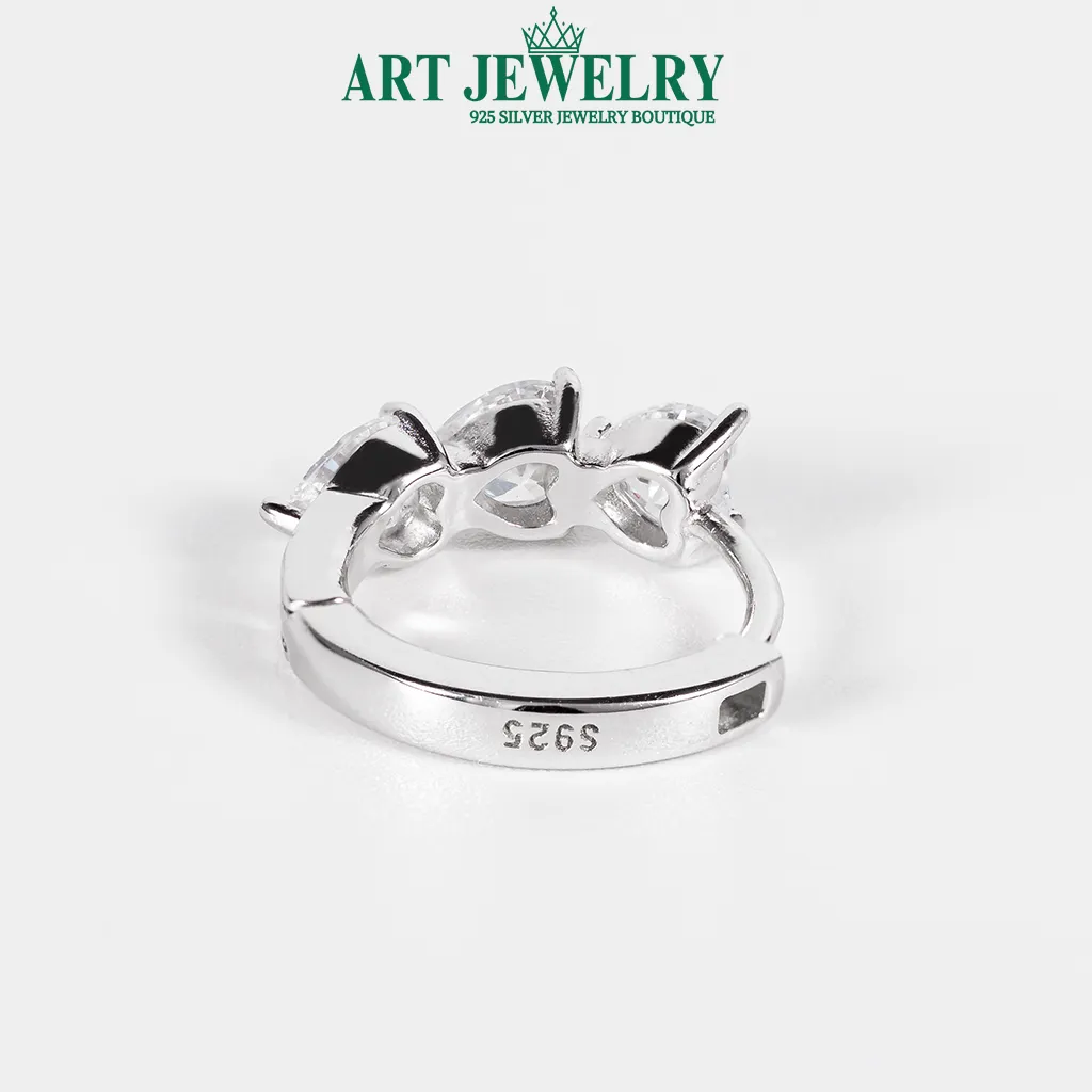 - Đá: Cubic Zirconia (CZ) cắt hình trái tim – 3 viên xếp liền nhau – chiều ngang mặt đá 3mm
