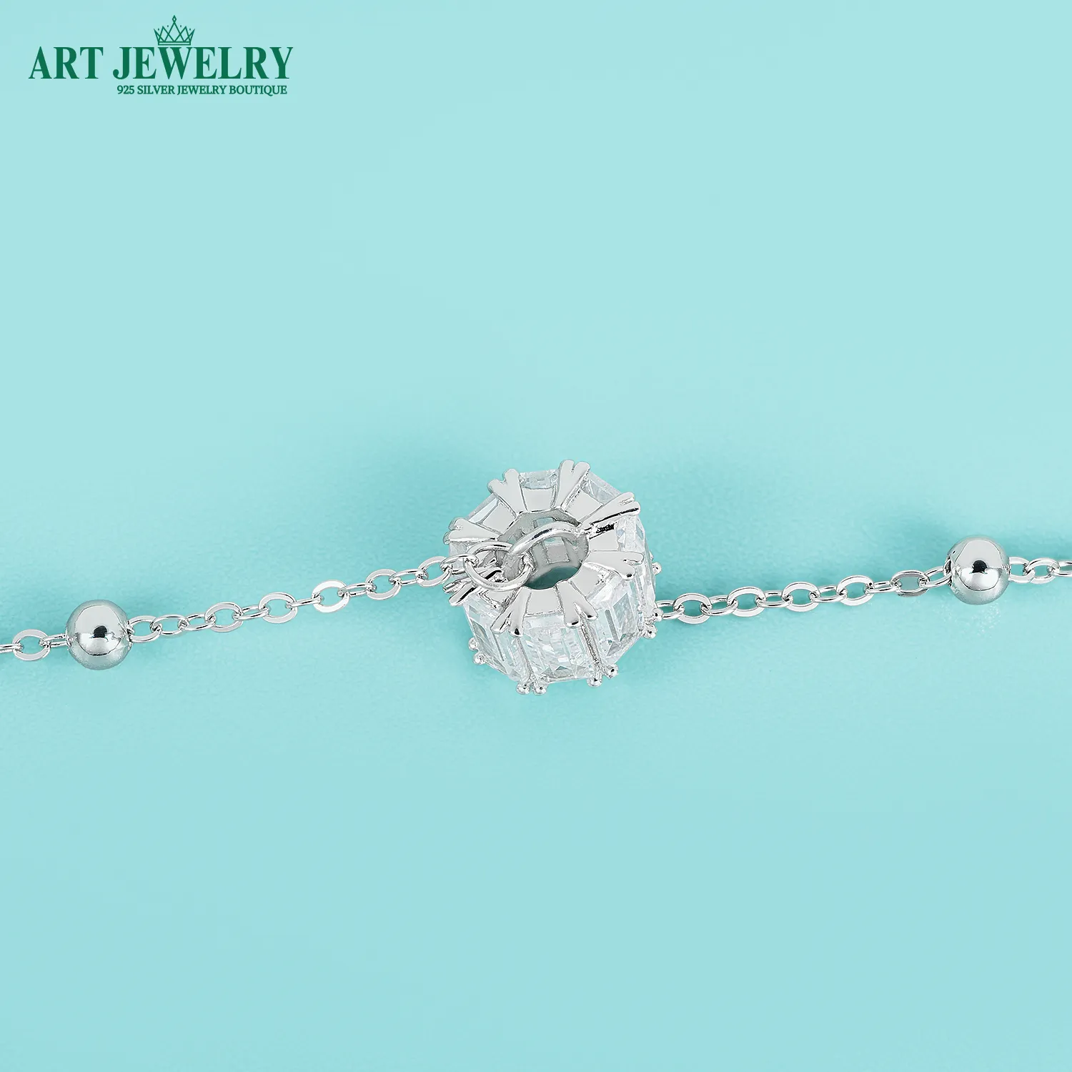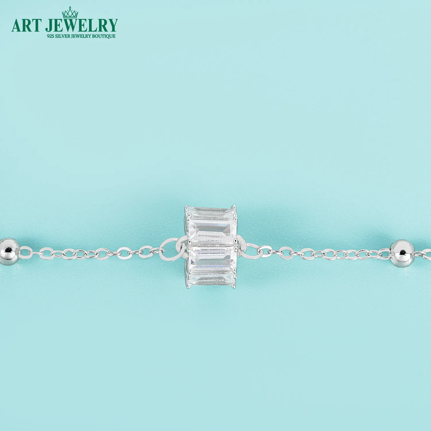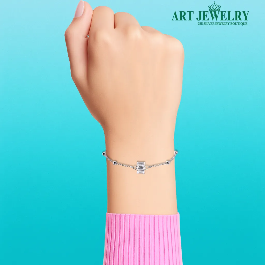 Lắc tay charm đá chữ nhật bạc 925 là lựa chọn hoàn hảo cho nàng yêu vẻ đẹp hiện đại và gọn gàng. Dọc theo sợi lắc, các charm đá CZ cắt chữ nhật (cảm hứng emerald/baguette) được sắp xếp nhịp nhàng, tạo nên hiệu ứng bắt sáng sắc nét nhưng vẫn tinh tế. Bề mặt xi kim giúp tổng thể luôn sáng bóng, hạn chế xỉn màu và dễ vệ sinh khi đeo mỗi ngày.