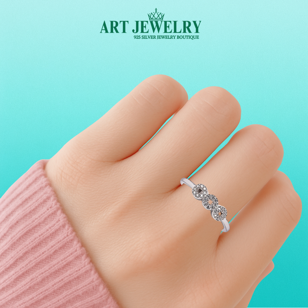 Nhẫn kim tiền đính đá CZ bạc 925 lấy cảm hứng từ hình tượng đồng tiền cổ – biểu trưng cho tài lộc và may mắn. Thiết kế 3 mặt tròn xếp liền nhau, mỗi mặt đính đá CZ tán sắc rực rỡ, tạo hiệu ứng lấp lánh khi chuyển động tay. Sự kết hợp giữa biểu tượng phong thủy và phong cách trang sức hiện đại mang lại vẻ sang trọng, ý nghĩa và dễ đeo hằng ngày.