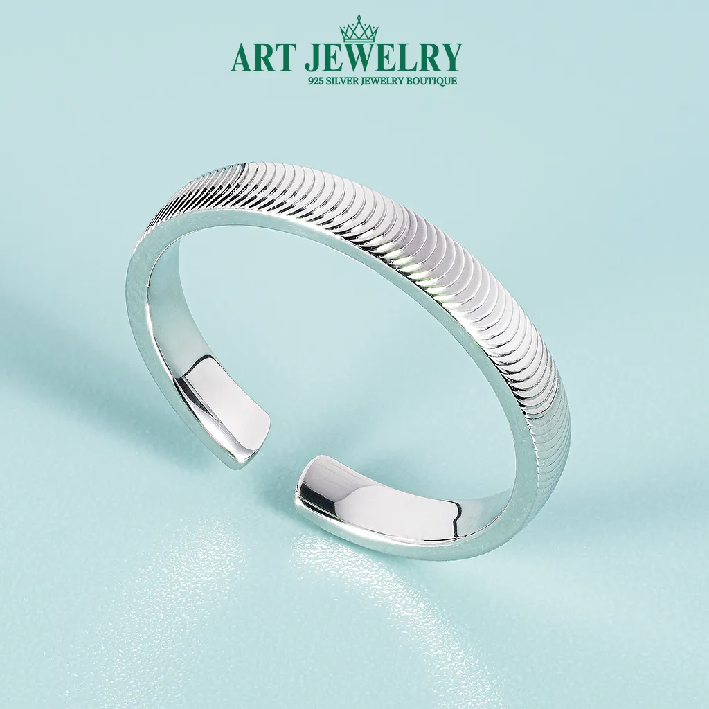 Chất liệu bạc 925 kết hợp lớp xi kim giúp bề mặt sáng bóng bền bỉ, hạn chế xỉn màu và dễ vệ sinh. Lòng nhẫn bo mịn cho cảm giác êm tay, các mép được xử lý kỹ để hạn chế cấn khi hoạt động.