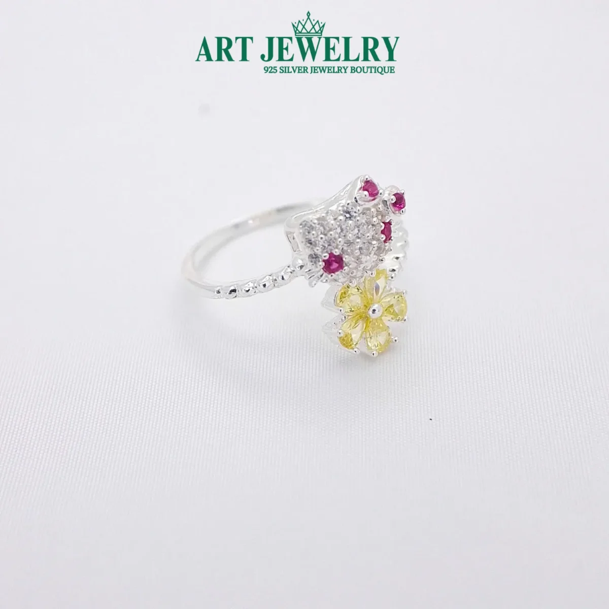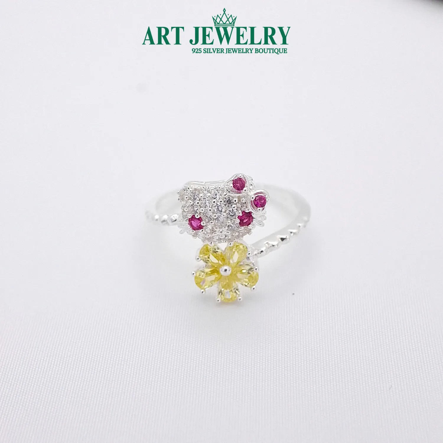 Nhẫn mèo kitty hoa vàng