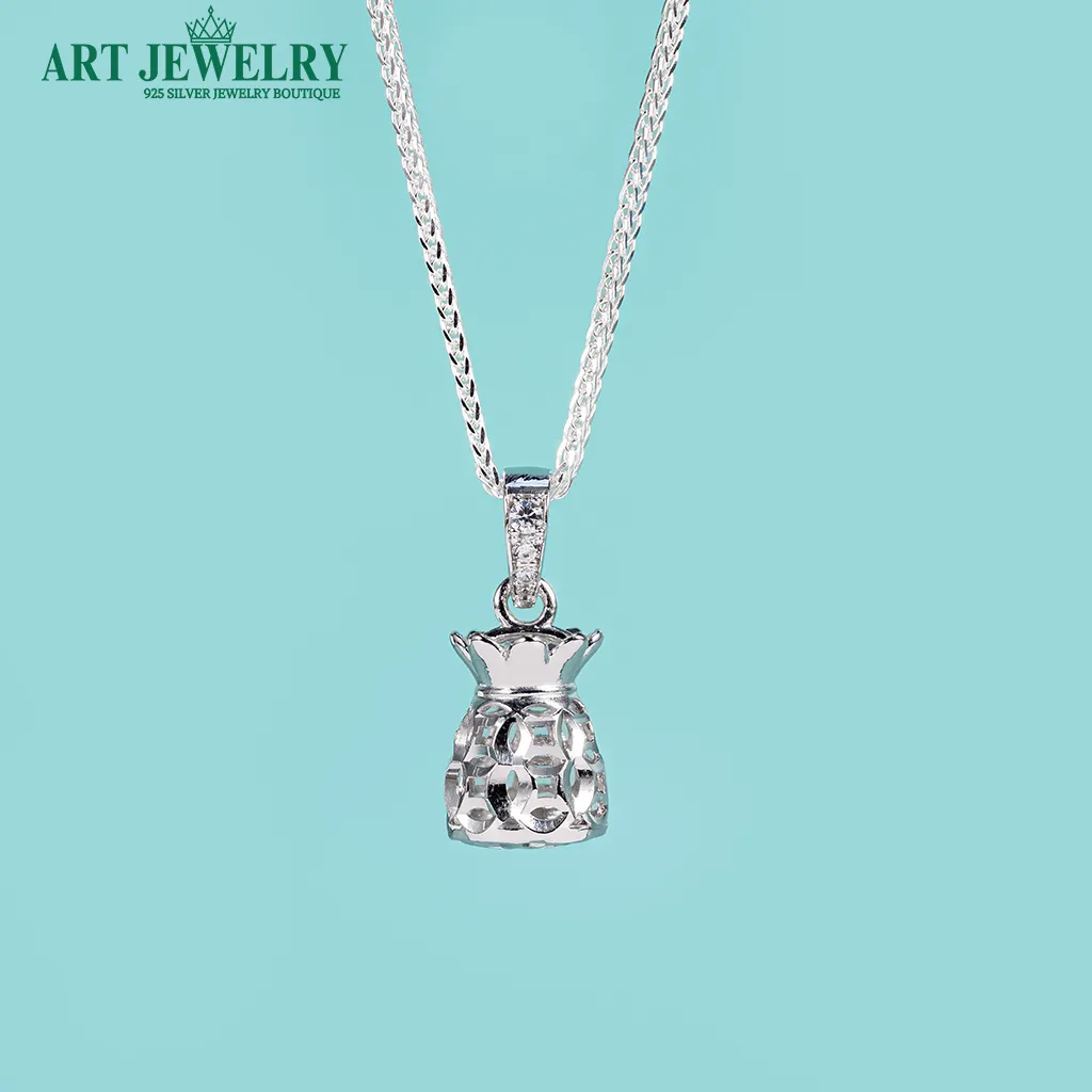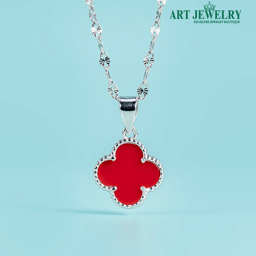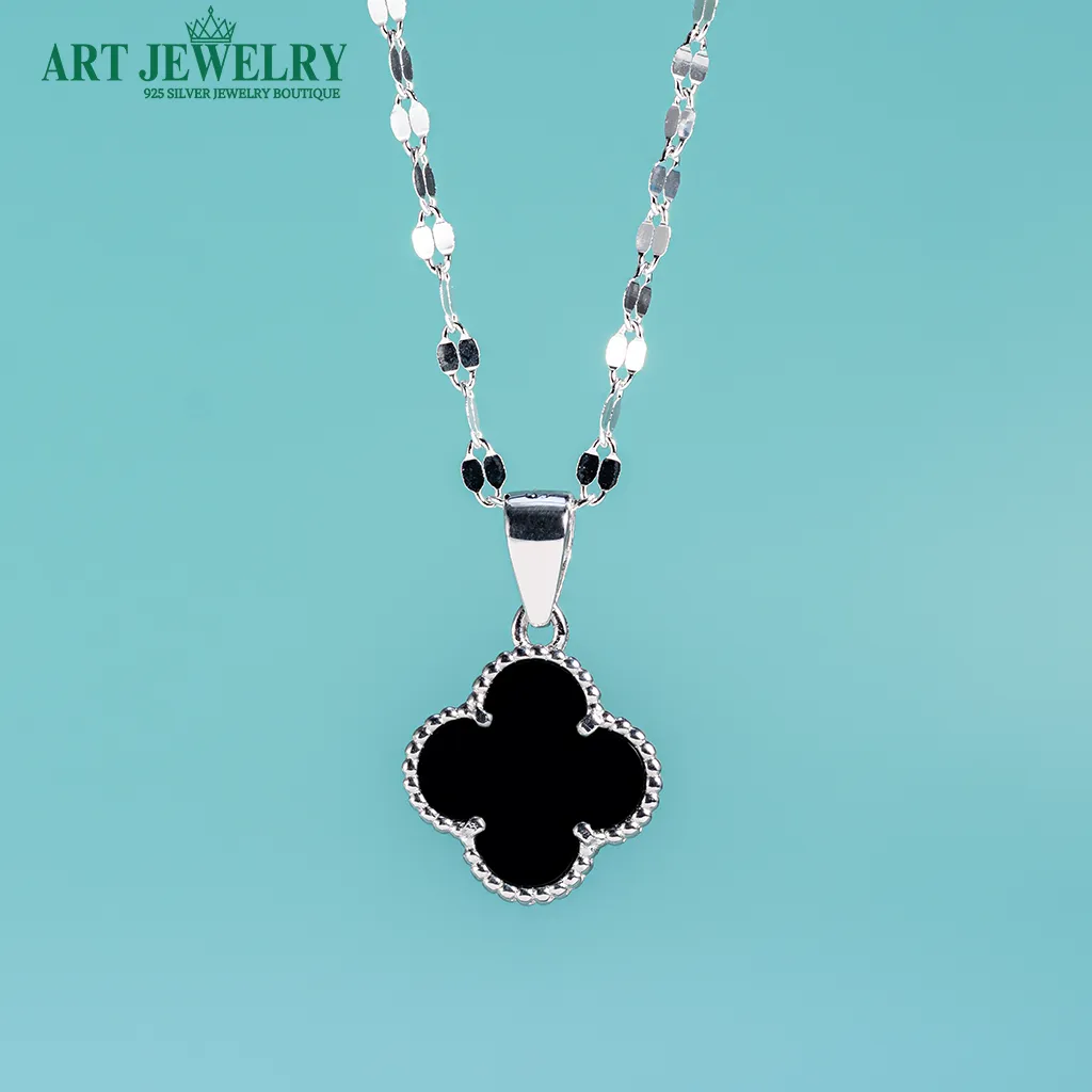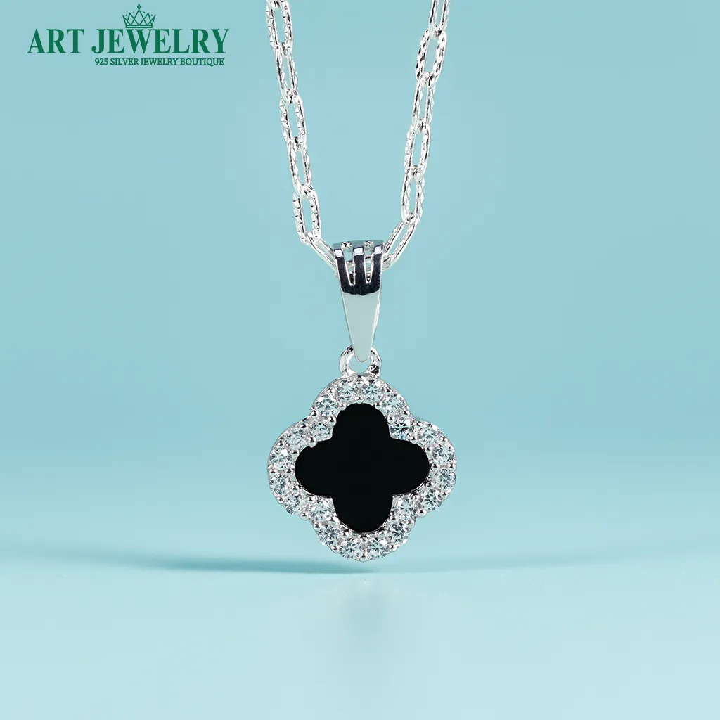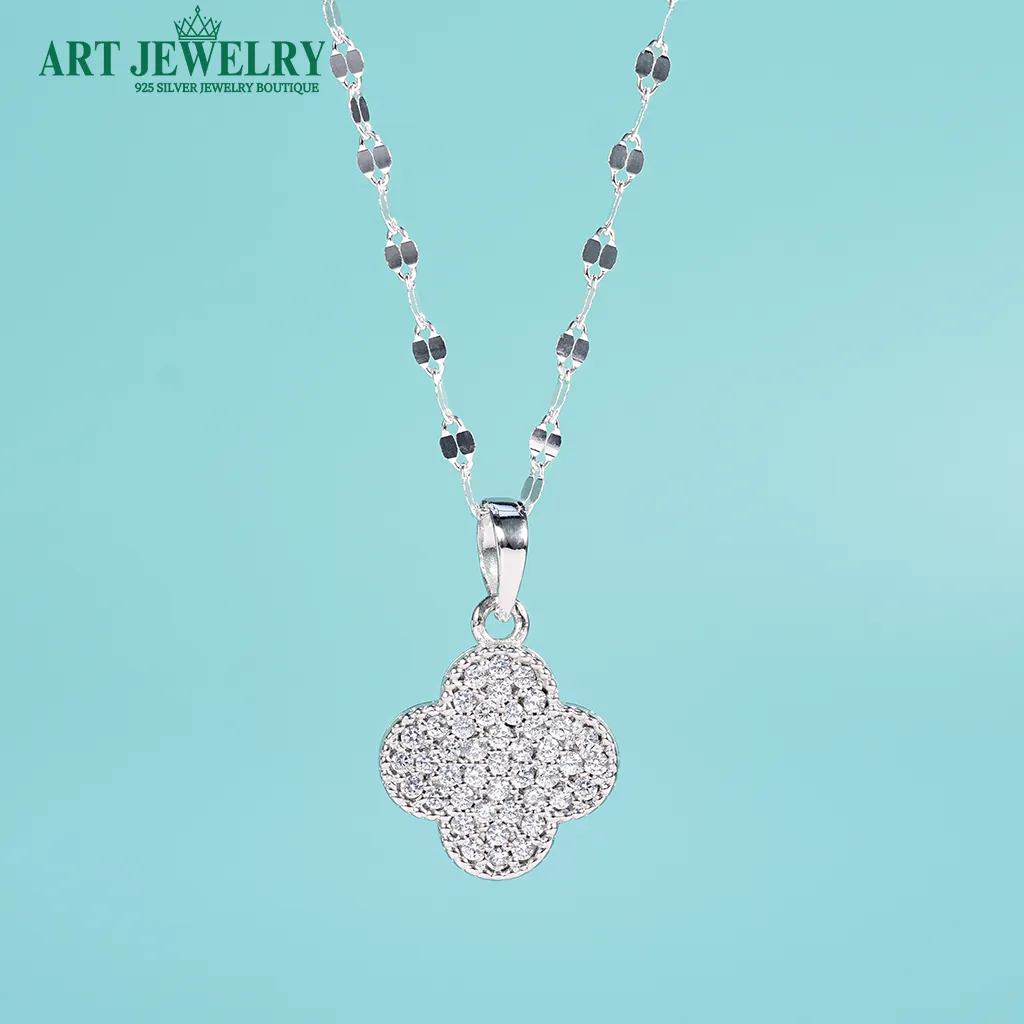 Dây chuyền trơn Italy gắn mặt cỏ bốn lá đính đá tấm CZ bạc 925