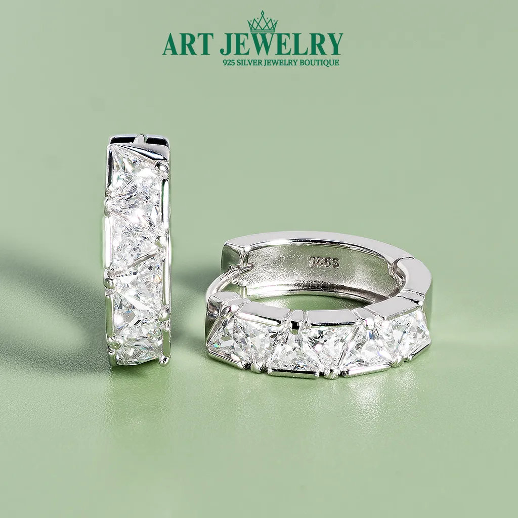 Bông tai khoen tròn đuôi bật đá tam giác bạc 925 mang lại phong cách trẻ trung, độc đáo và cuốn hút. Thiết kế dạng huggie hoop (khoen tròn nhỏ ôm sát tai), kết hợp phần đuôi bật chắc chắn, giúp thao tác đeo/tháo nhanh chóng và thoải mái.