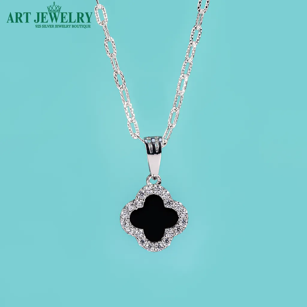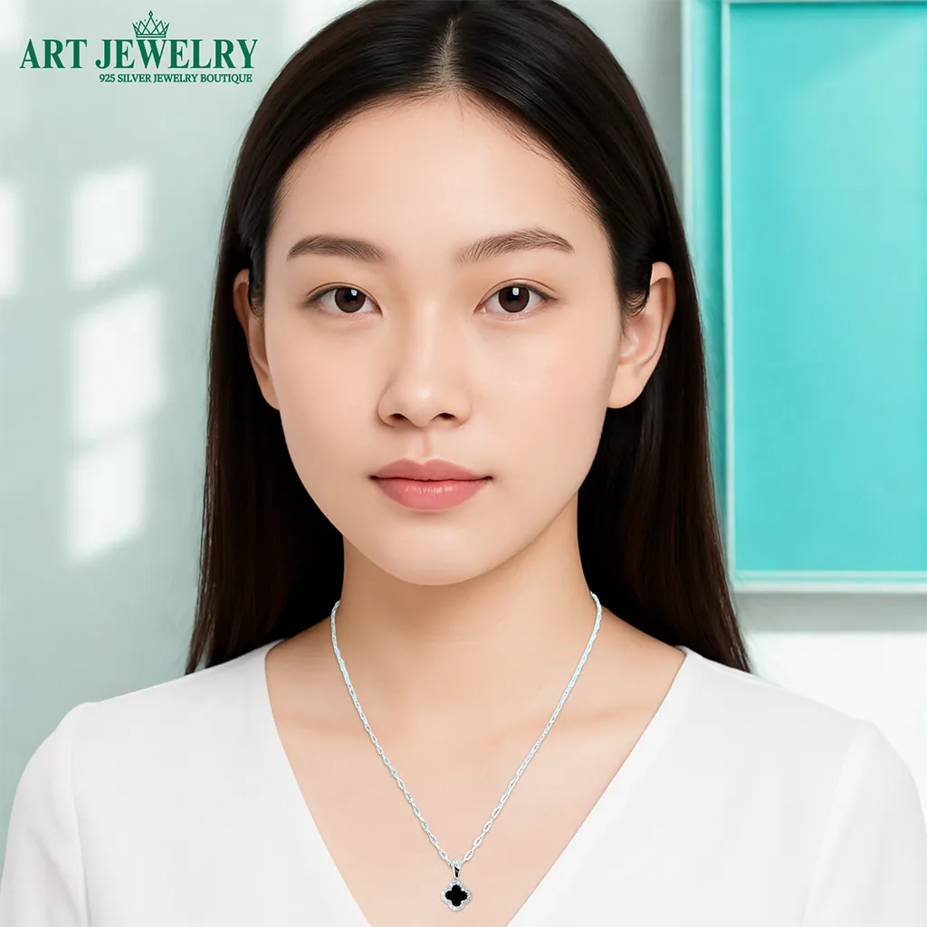 Dây chuyền Italy gắn mặt cỏ bốn lá đá đen viền CZ bạc 925 là thiết kế độc đáo, mang đến sự kết hợp hoàn hảo giữa vẻ đẹp hiện đại và ý nghĩa may mắn truyền thống.