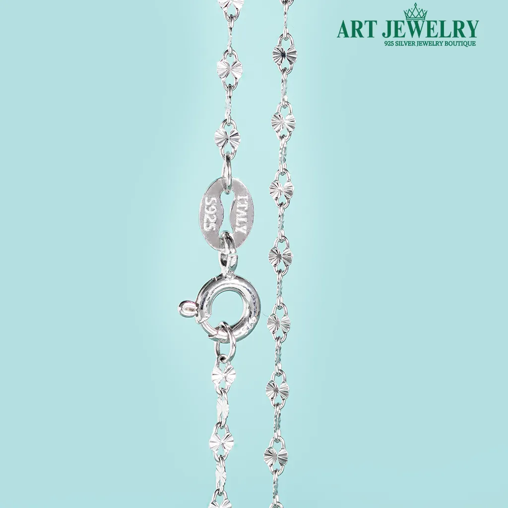 Điểm đặc biệt của sản phẩm nằm ở dây chuyền Italy nhập khẩu – nổi tiếng với kỹ thuật chế tác tinh xảo, bền chắc và độ sáng bóng vượt trội. Khi kết hợp với mặt bạc 925 xi kim, dây chuyền tạo nên tổng thể sang trọng, thanh lịch nhưng vẫn hiện đại và trẻ trung.
