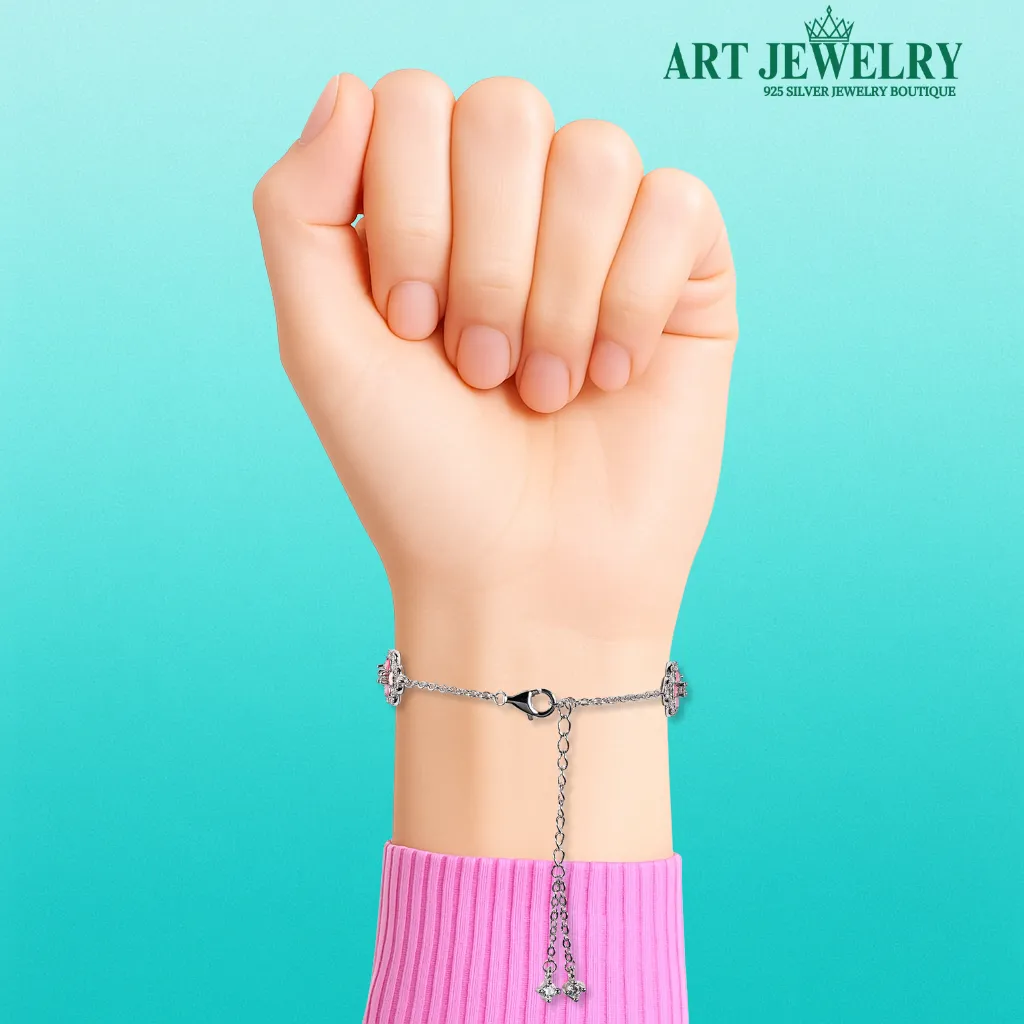 Lắc tay cỏ bốn lá tim khảm đá hồng bạc 925 mang đến vẻ dịu dàng, tinh tế nhưng vẫn rất hiện đại. Biểu tượng cỏ bốn lá với cánh hình tim được khảm đá hồng trong trẻo, phản chiếu ánh sáng nhẹ nhàng giúp cổ tay rạng rỡ mà không phô trương. Chất liệu bạc 925 kết hợp lớp xi kim giữ bề mặt sáng bóng, hạn chế xỉn màu và dễ vệ sinh khi đeo thường xuyên.