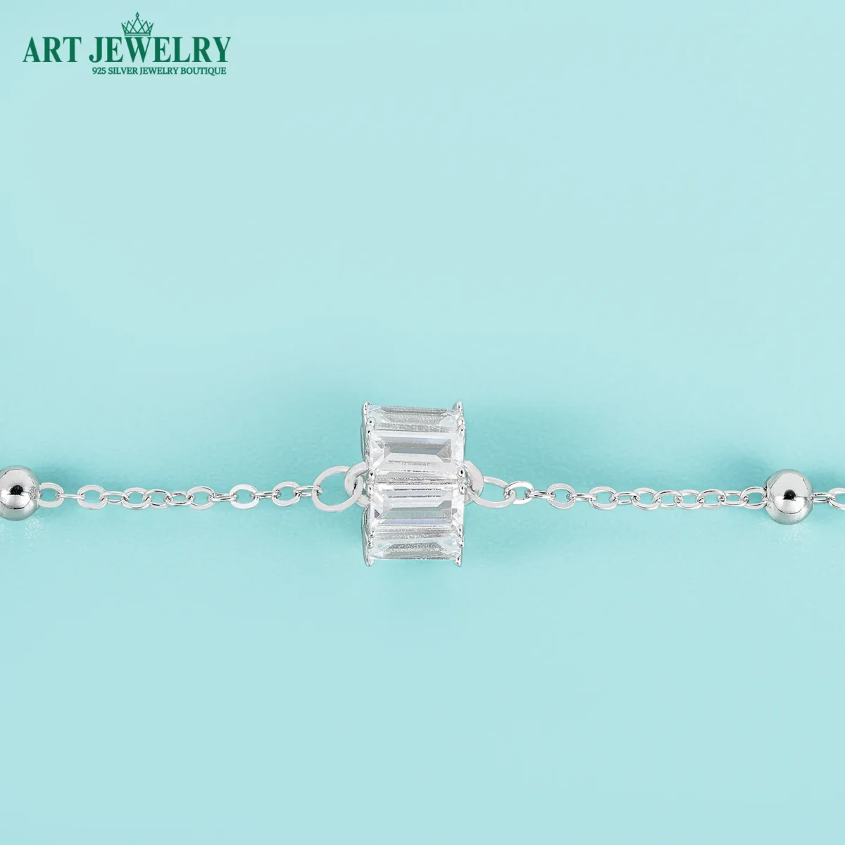 Lắc tay charm đá chữ nhật bạc 925 là lựa chọn hoàn hảo cho nàng yêu vẻ đẹp hiện đại và gọn gàng. Dọc theo sợi lắc, các charm đá CZ cắt chữ nhật (cảm hứng emerald/baguette) được sắp xếp nhịp nhàng, tạo nên hiệu ứng bắt sáng sắc nét nhưng vẫn tinh tế. Bề mặt xi kim giúp tổng thể luôn sáng bóng, hạn chế xỉn màu và dễ vệ sinh khi đeo mỗi ngày.