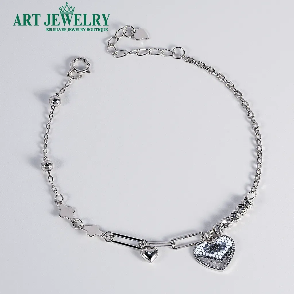 Chiếc lắc hợp nhiều bối cảnh: đi làm, dạo phố hay dự tiệc nhẹ. Bạn có thể đeo đơn lẻ để tôn nét thanh thoát, hoặc mix cùng đồng hồ/nhẫn bạc để tạo hiệu ứng layer hiện đại. Dưới ánh sáng, bề mặt khắc máy cùng lớp xi kim phản chiếu dịu mắt, giúp cổ tay rạng rỡ mà không phô trương.