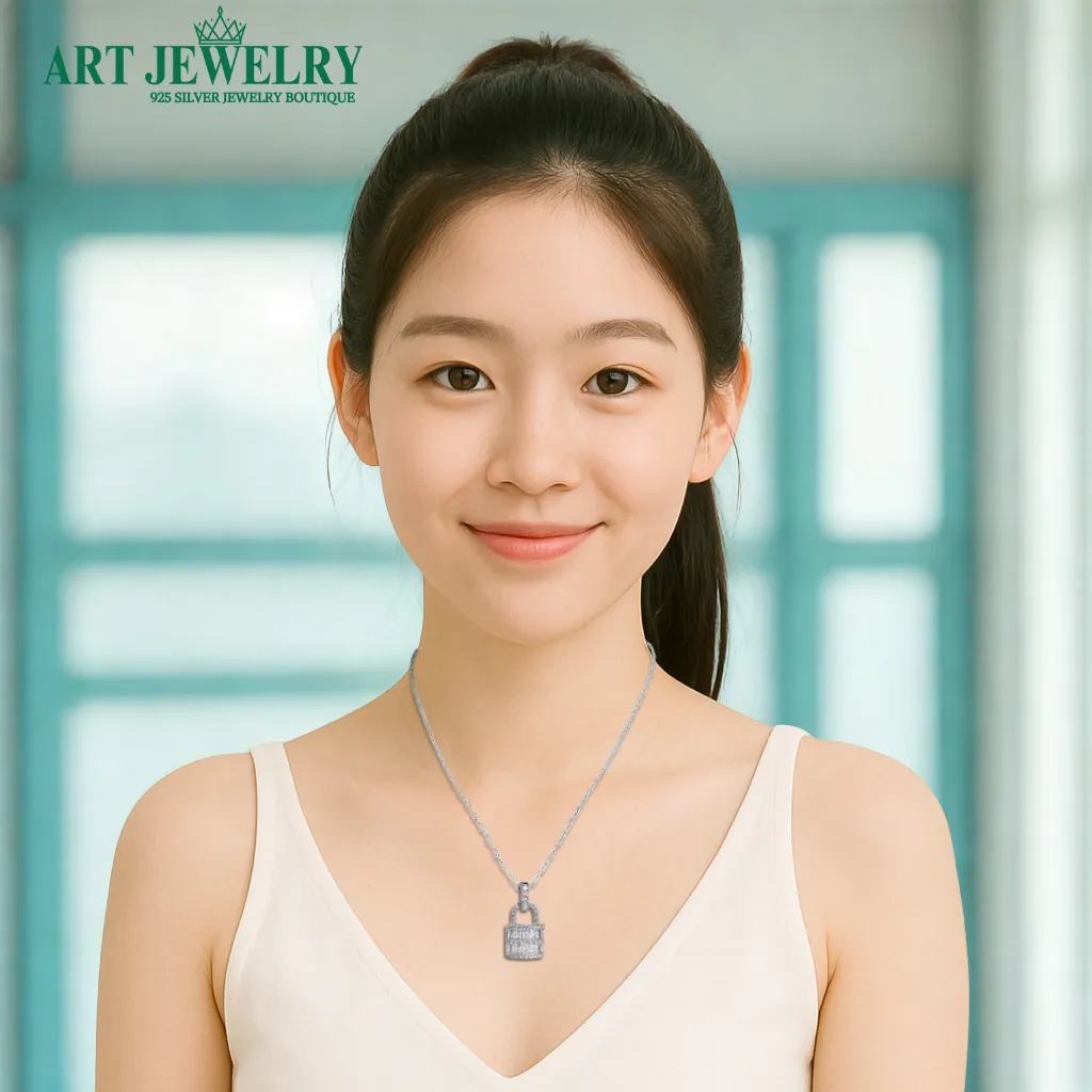Mặt dây ổ khóa gắn đá CZ bạc 925 là lựa chọn thời trang dành cho nàng yêu phong cách tối giản nhưng cá tính. Tạo hình ổ khóa biểu tượng được xử lý gọn gàng, các viên CZ xếp đều trên bề mặt tạo hiệu ứng bắt sáng tinh tế, giúp chi tiết ổ khóa trở thành điểm nhấn nổi bật mà không quá phô trương. Chất liệu bạc 925 kết hợp xi kim cho độ bóng bền bỉ, hạn chế xỉn màu, dễ vệ sinh và phù hợp đeo mỗi ngày.
