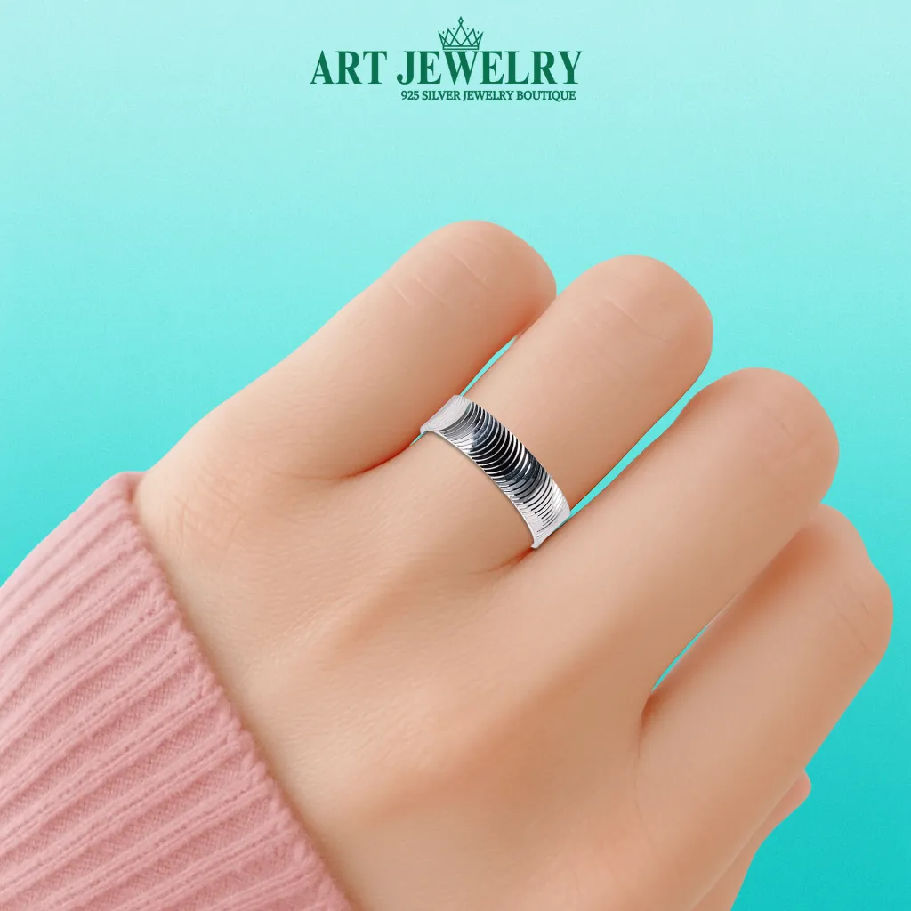 Nhẫn mắt mèo bản 5mm bạc 925 gây ấn tượng bởi kỹ thuật hoàn thiện bề mặt đặc biệt: khắc máy các đường cong xếp lớp liên hoàn , tạo “rãnh” phản quang liên tục nên khi thay đổi góc nhìn, vòng sáng chạy dọc mặt nhẫn long lanh như mắt mèo. Bản 5 mm đủ dày để lên form chắc tay nhưng vẫn thanh lịch cho trang phục hằng ngày lẫn dự tiệc.