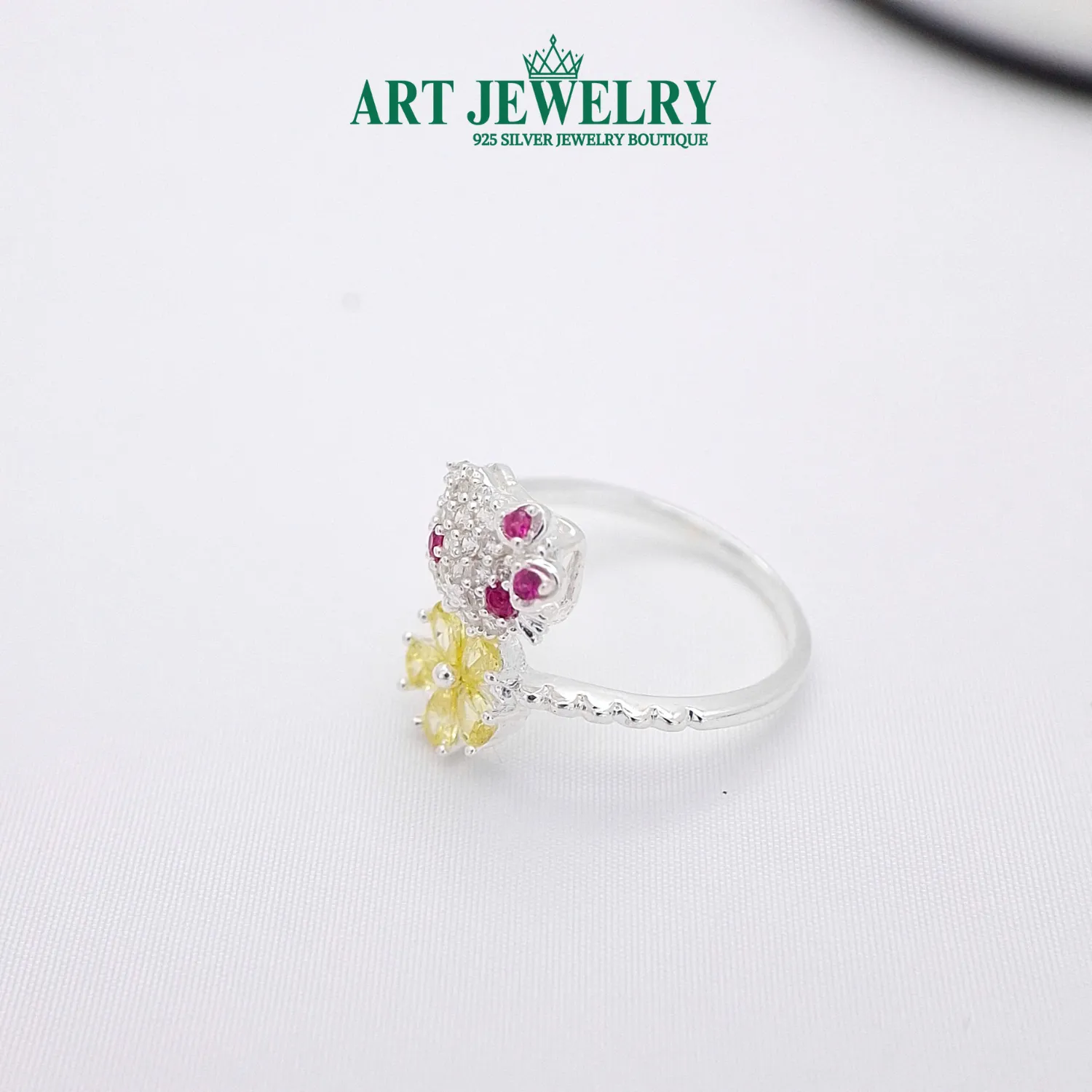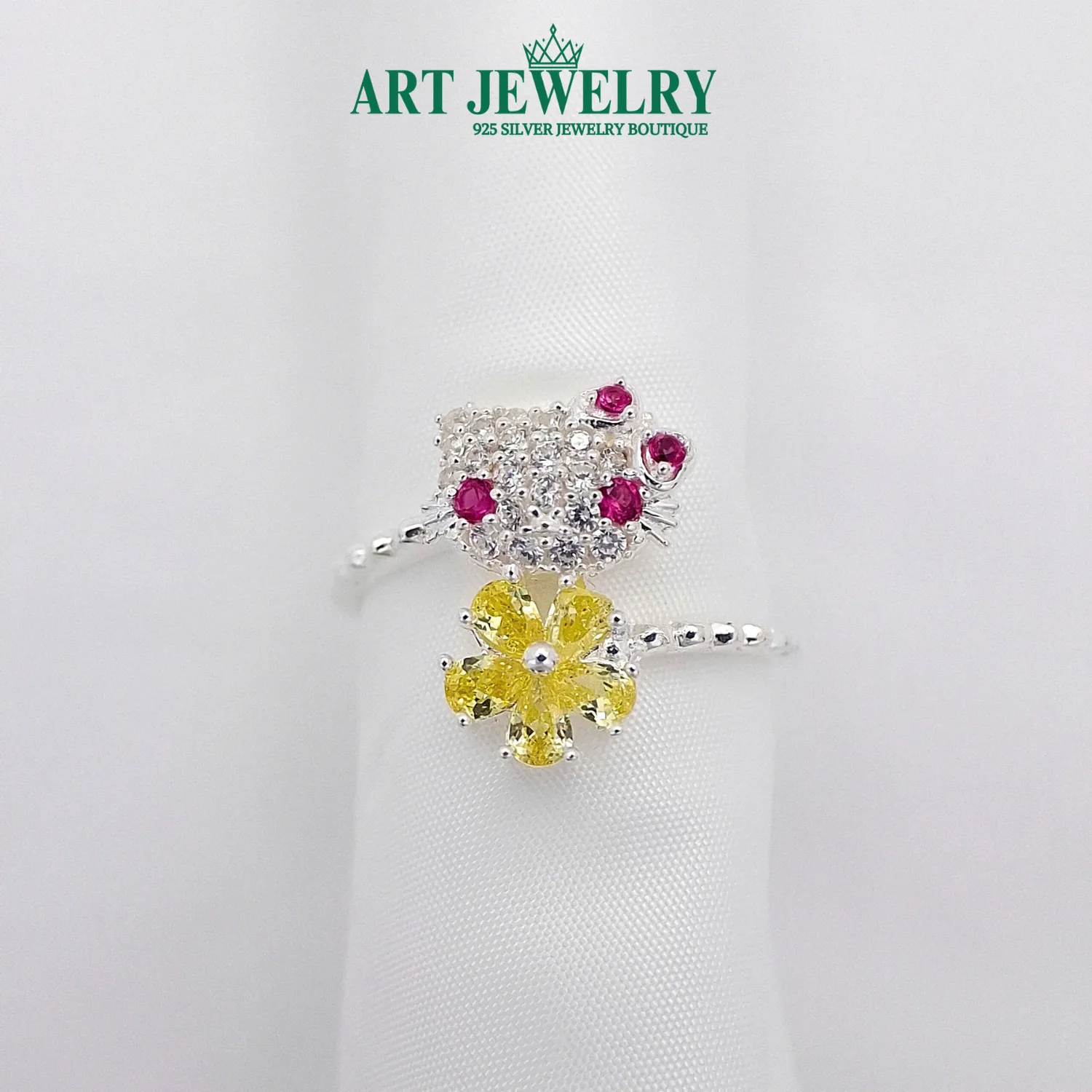 Nhẫn mèo kitty hoa vàng
