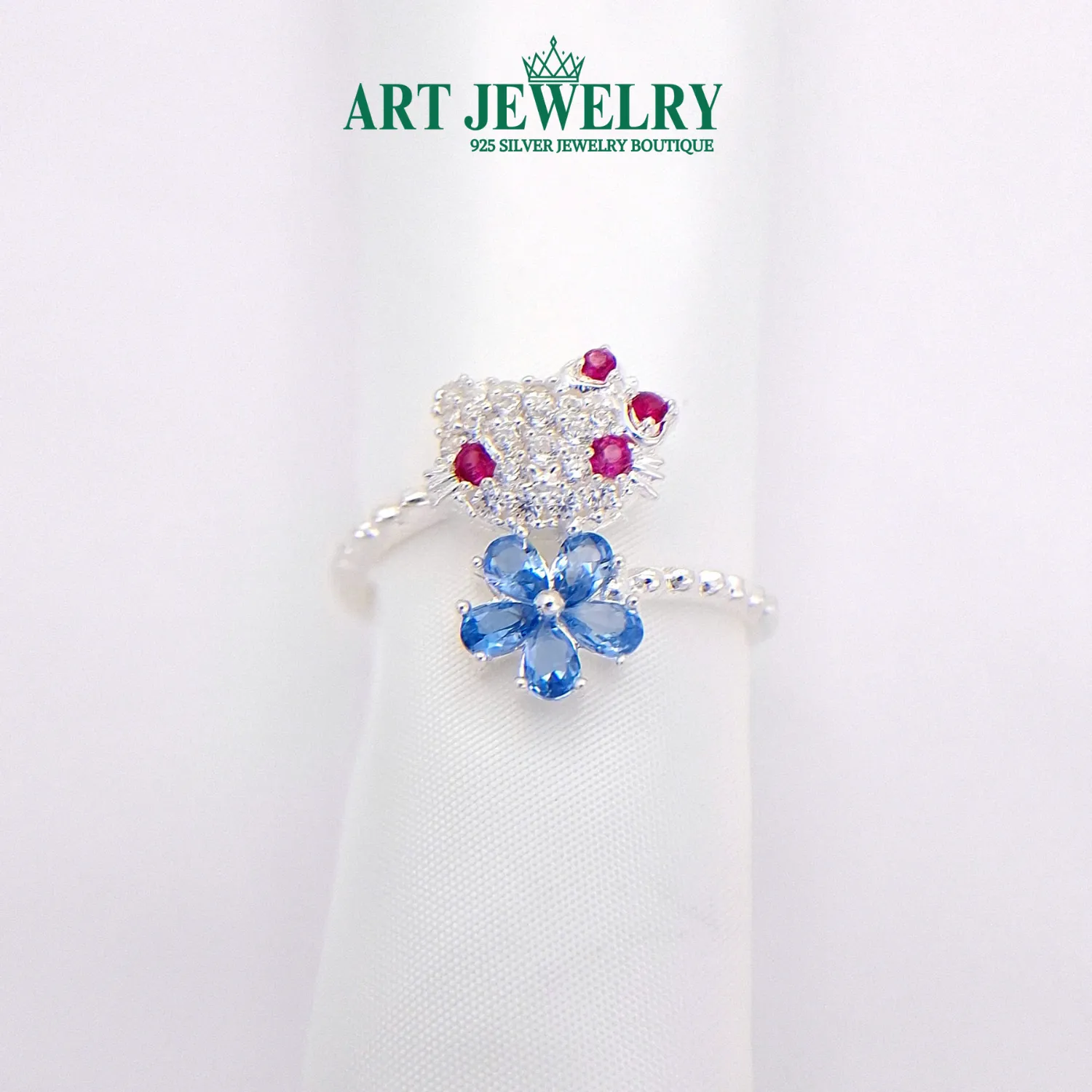 Chiếc nhẫn nhỏ nhắn được thiết kế riêng cho bé gái với hình mèo Kitty đáng yêu kết hợp cùng bông hoa màu xanh biển tươi tắn. Sản phẩm mang đến cảm giác vui tươi, ngọt ngào và đầy nữ tính, phù hợp với các bé yêu thích sự dễ thương và nổi bật. Nhẫn có kích thước nhỏ, ôm tay vừa vặn, là món quà lý tưởng cho các bé gái trong dịp sinh nhật, lễ hoặc đơn giản là để bé thêm rạng rỡ mỗi ngày.