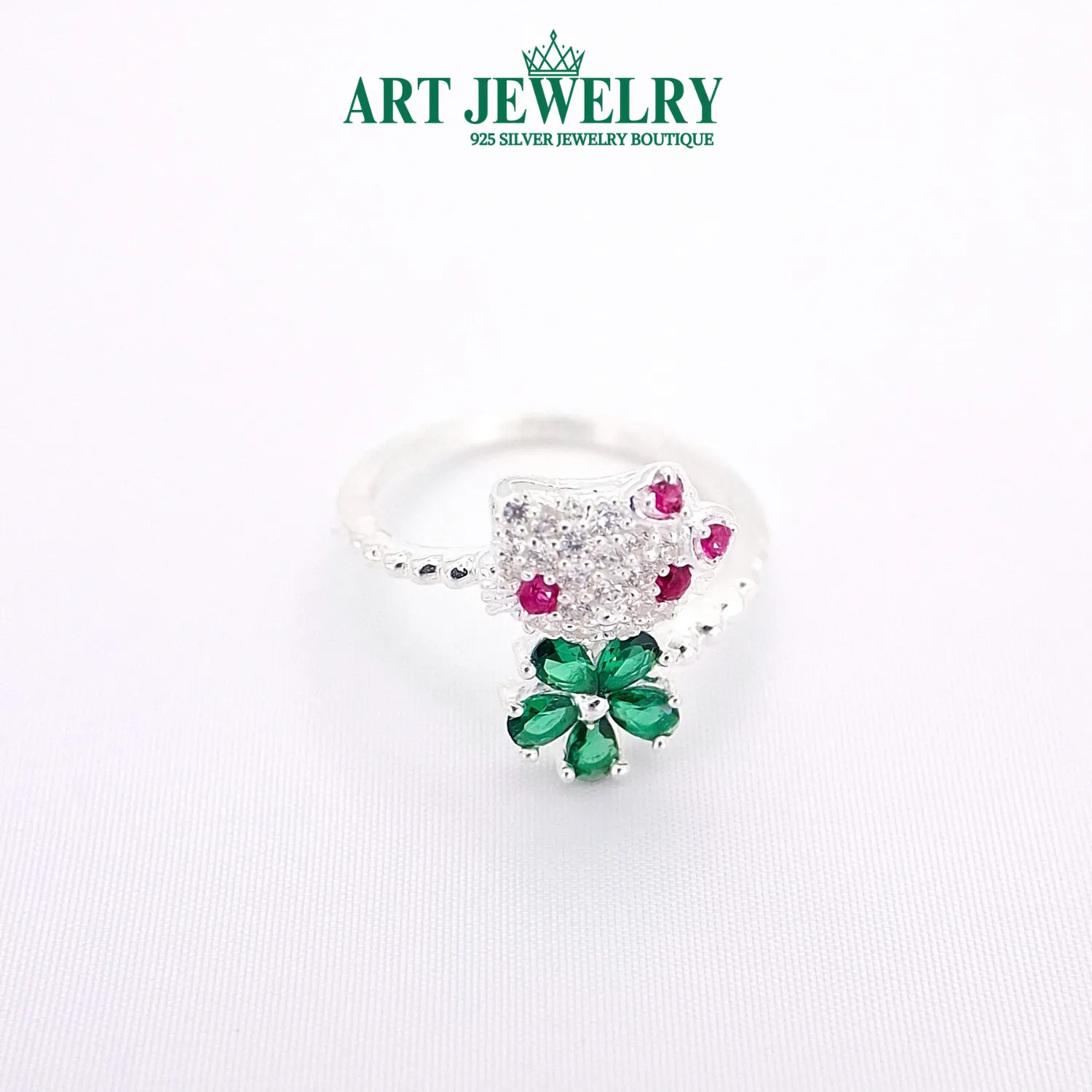 Chiếc nhẫn nhỏ nhắn được thiết kế riêng cho bé gái với hình mèo Kitty đáng yêu kết hợp cùng bông hoa màu xanh lá cây tươi tắn. Sản phẩm mang đến cảm giác vui tươi, ngọt ngào và đầy nữ tính, phù hợp với các bé yêu thích sự dễ thương và nổi bật. Nhẫn có kích thước nhỏ, ôm tay vừa vặn, là món quà lý tưởng cho các bé gái trong dịp sinh nhật, lễ hoặc đơn giản là để bé thêm rạng rỡ mỗi ngày.